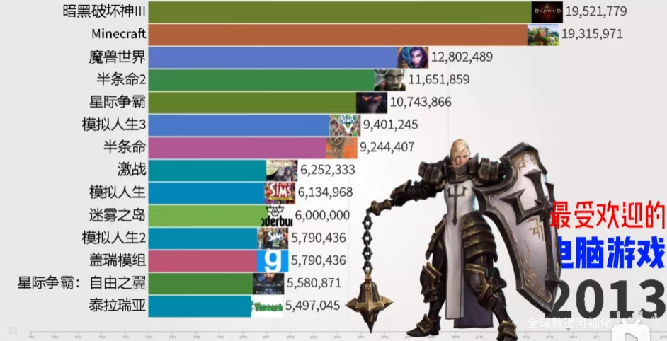 有一個UP做了一個全球數據 可視化視頻,統計了 1985 年到 2019 年的 PC 遊戲銷量。從視頻畫面來看,説暴雪的遊戲佔據了半壁江山應該是一點都不過份吧。