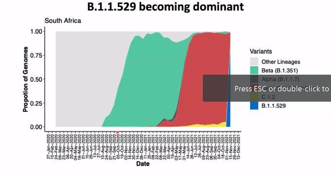 “南非衞生部和支持科學家昨天發佈了有關新型SARS-COV-2變體的重要證據。這被稱為譜系 B.1.1.529,可以在此處找到該信息: https://www.youtube.com/watch?v=Vh4XMueP1zQ。