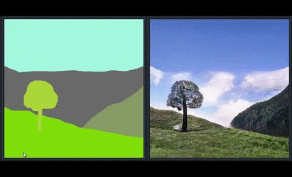 GauGAN1.0 的簡筆畫轉換效果,圖片來自英偉達官網