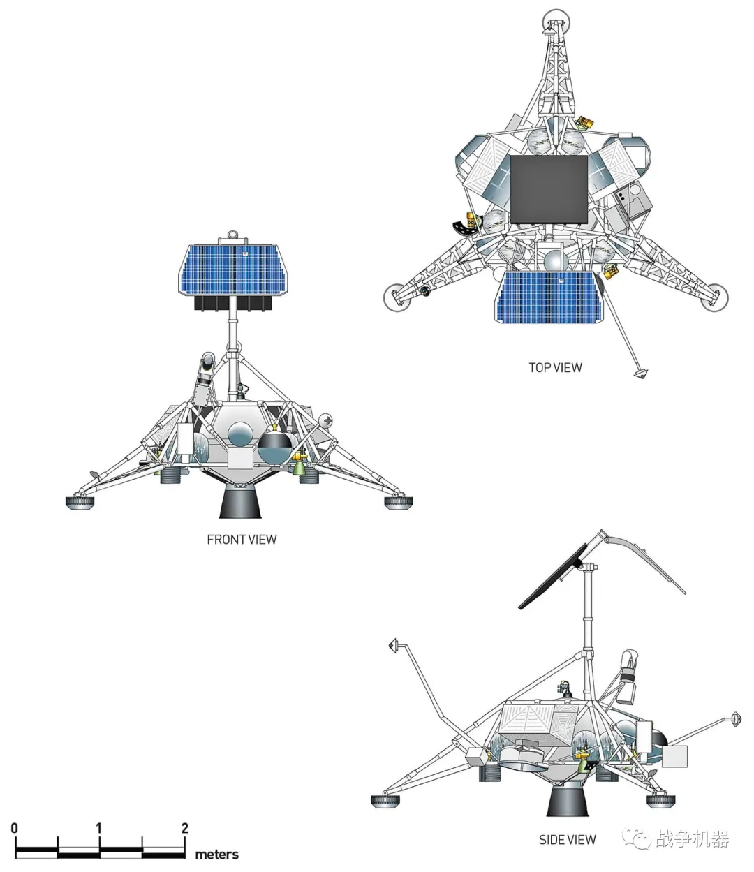 由此產生的機器看起來令人印象深刻,但略顯笨拙,上面是一個寬大的蛤殼(包含着陸器),下面是一個倒置的圓錐體(包含軌道器)。