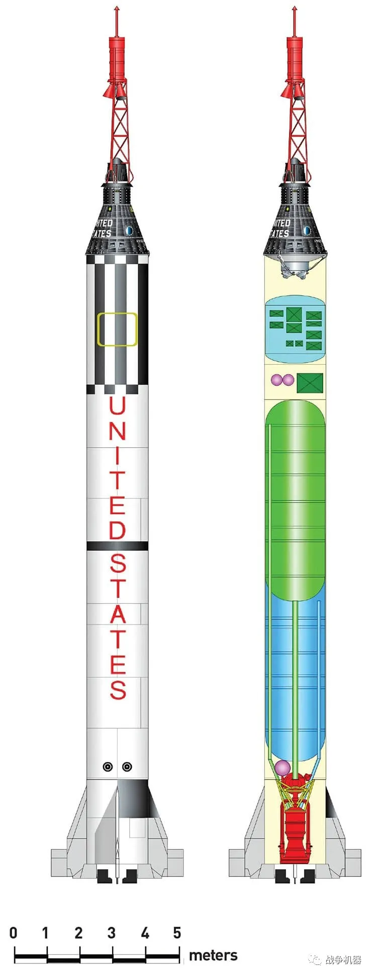 與不太成熟的 “先驅者 “計劃相比,陸軍從20世紀50年代初就有一種正在開發的導彈,由德國移民馮-布勞恩(Wernher von Braun)博士和他在亨茨維爾的同事領導(與克萊斯勒公司合作)。紅石(以亨茨維爾的陸軍紅石兵工廠命名)最初是作為一種中程核導彈設計的,能夠攜帶一個3130公斤的彈頭飛行約290公里,它享有明顯的優勢,僱用了許多在二戰期間製造V-2火箭的工程師和科學家;事實上,“紅石 “直接來自V-2。從1953年到1958年,“紅石 “的37次試飛中,65%的試飛成功,但更重要的是,在這五年期間,馮-布勞恩的工程師做出了許多重要的漸進式改進。