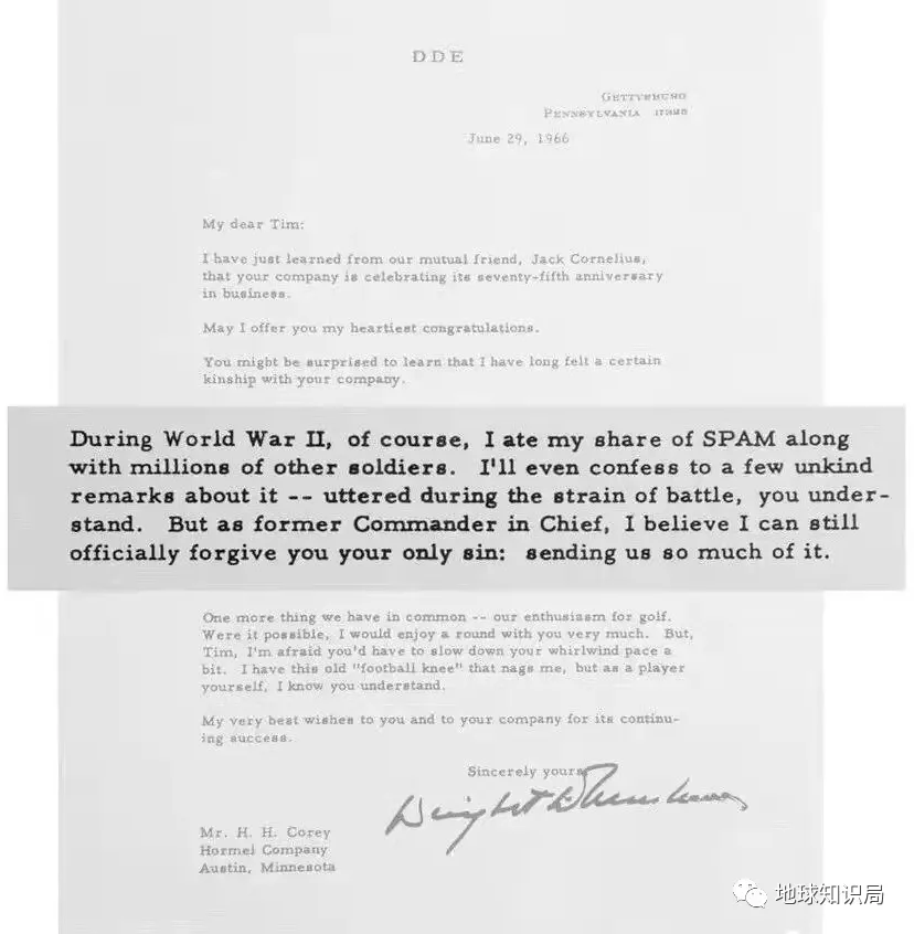 艾森豪威爾聽説了這事兒,寫了封信給SPAM