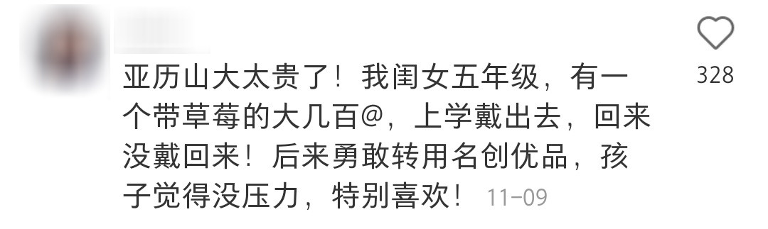 也有網友分享個人經歷,稱自己女兒弄丟了一個大幾百塊的髮圈後,她果斷改買平價髮圈,孩子也沒覺得有什麼壓力,特別喜歡。