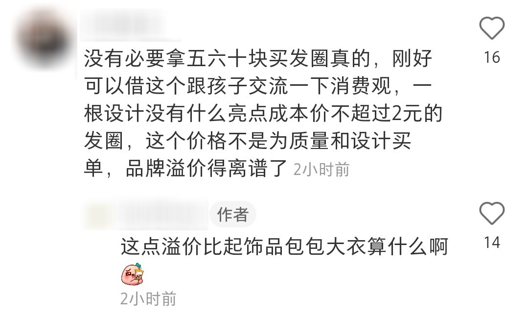言下之意,比起價格,她和女兒更在乎的是髮圈用起來是否順手,“扎個頭發而已,高興就好”。