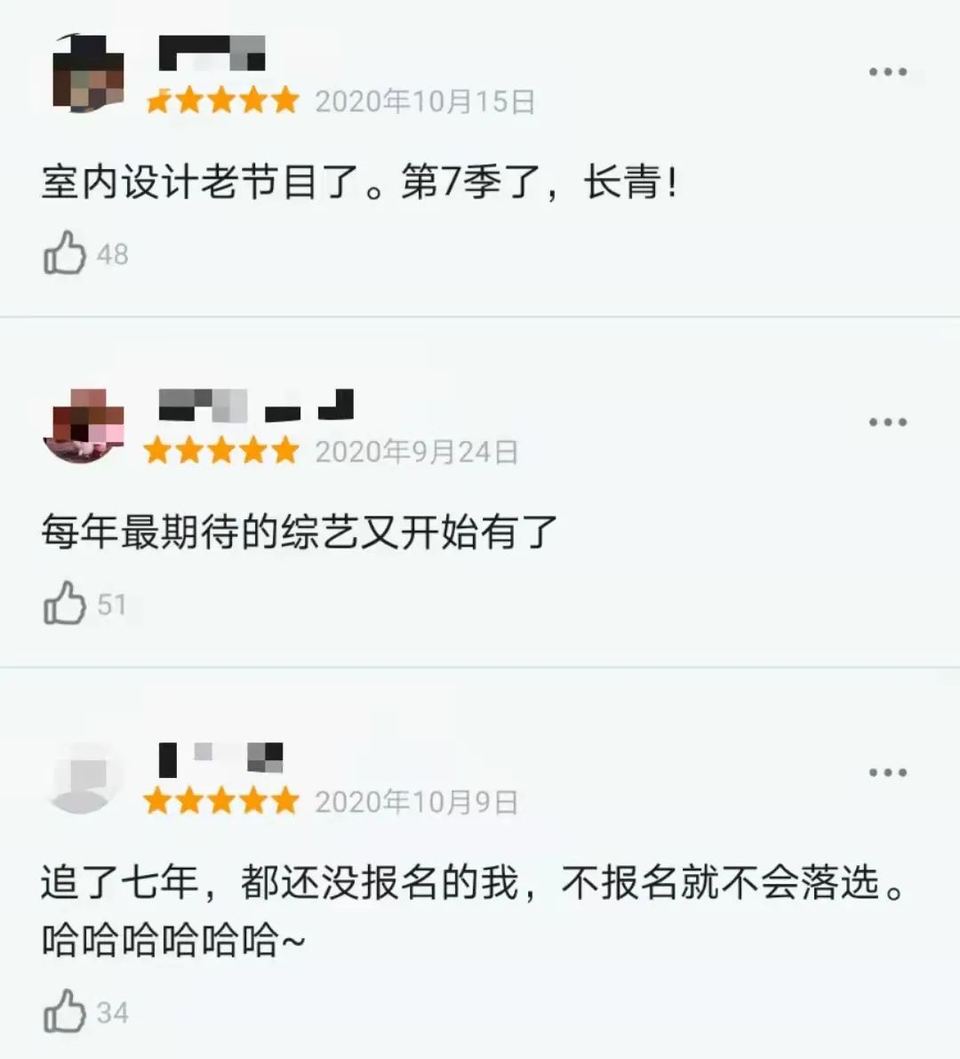 在第7季和第8季的豆瓣短評中,不難看到很多翹首期盼的身影:“室內設計老節目了。第七季了,長青!”,亦或是“每年最期待的綜藝又開始了”,還有“追了七年,都還沒有報名的我,不報名就不會落選”這樣追了七年的忠實觀眾。