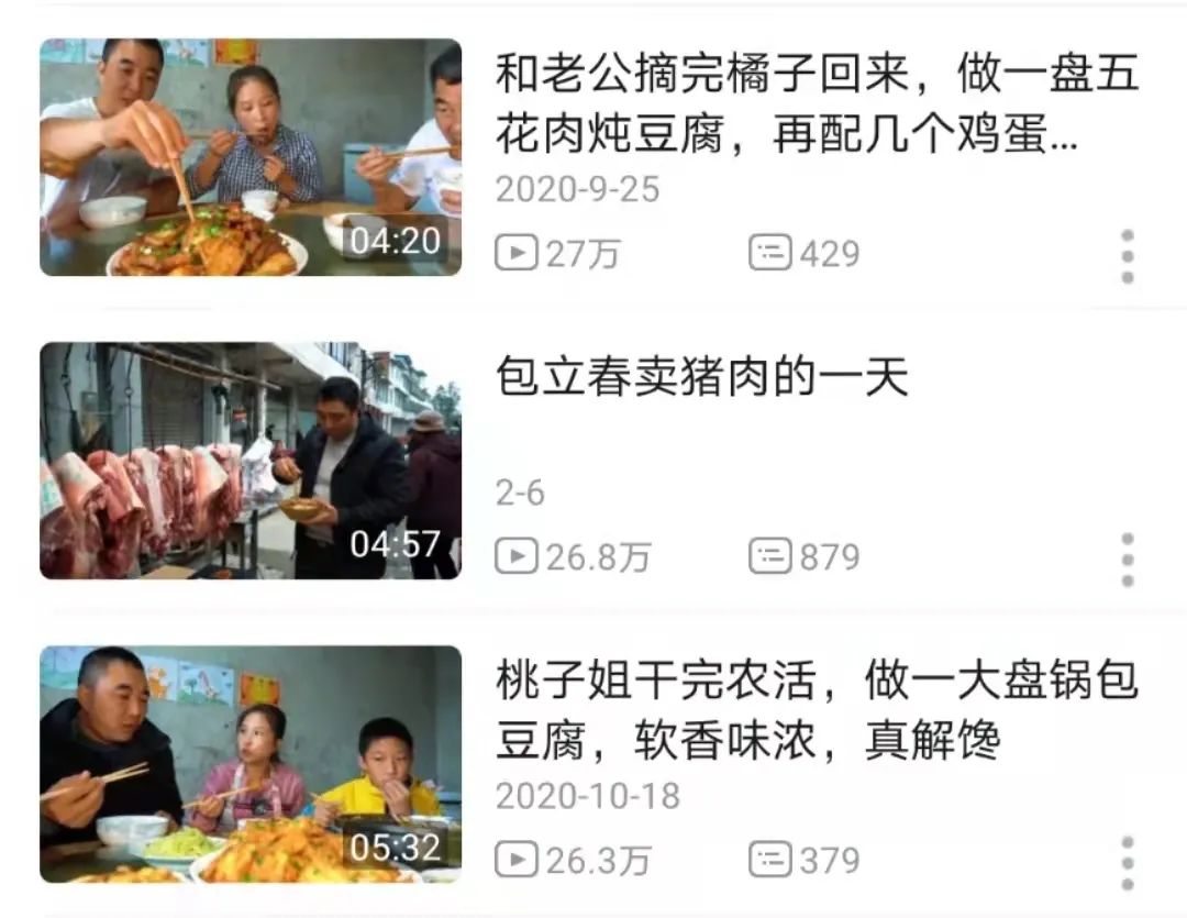 過去幾年,不少為我們提供了鄉野想象的博主都在走紅。耕作鋤禾的李子柒,在B站的粉絲量已將近八百萬,養殖竹鼠的華農兄弟,使“吃竹鼠的一百種方法”成為了年度爆梗;蜀中桃子姐至今仍在屋頭的柴火灶上烹飪一家人的美食,桃子姐田間屋頭的日常生活成為了不少人的下飯神器。