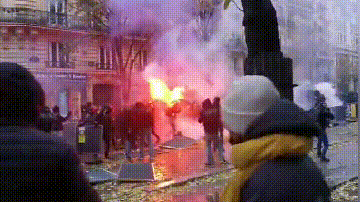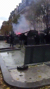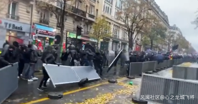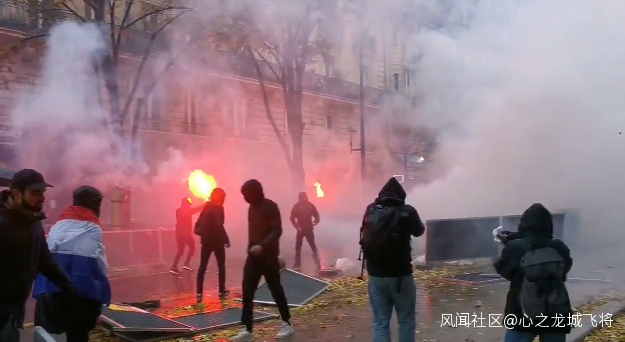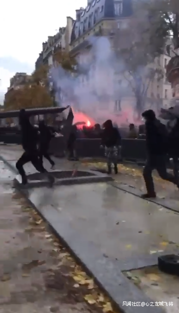 法國街頭變“戰場”!黑衣蒙面人滿街追打警察 拆路障扔照明彈_風聞