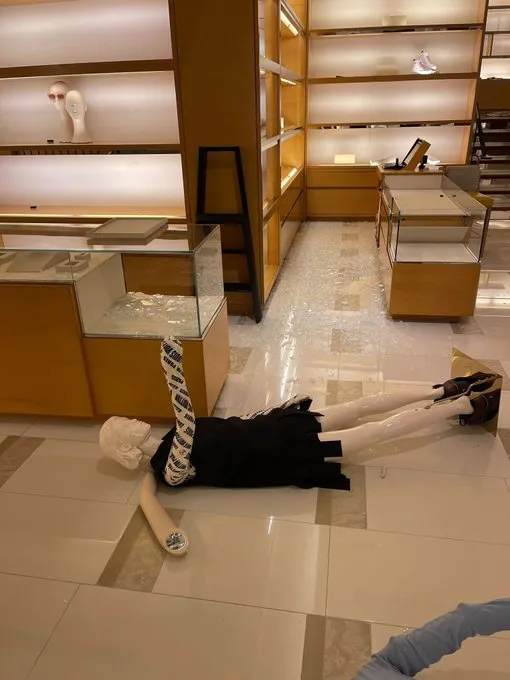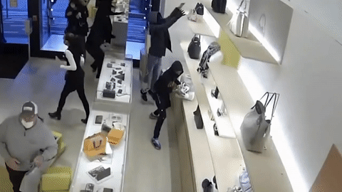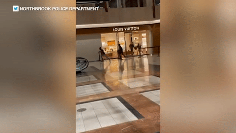 14個蒙面人在商場周圍的不同地點下車,趁商場警衞短暫交班期間,分批蜂擁而上,伊利諾伊州的一家LV店也被劫匪掏空。