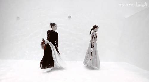 演員身着黑白薄紗,手持毛筆,眉眼間至於冷冽。
