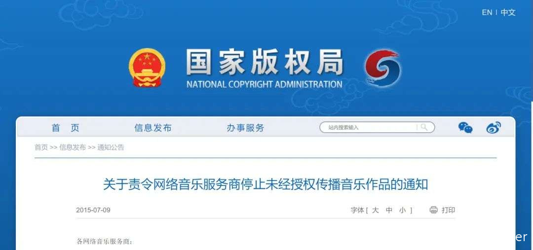 彼時,國家版權局發佈了《關於責令網絡音樂服務商停止未經授權傳播音樂的通知》,被媒體解讀為“史上最嚴版權令”。