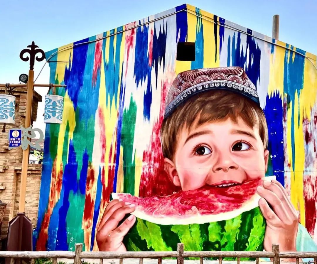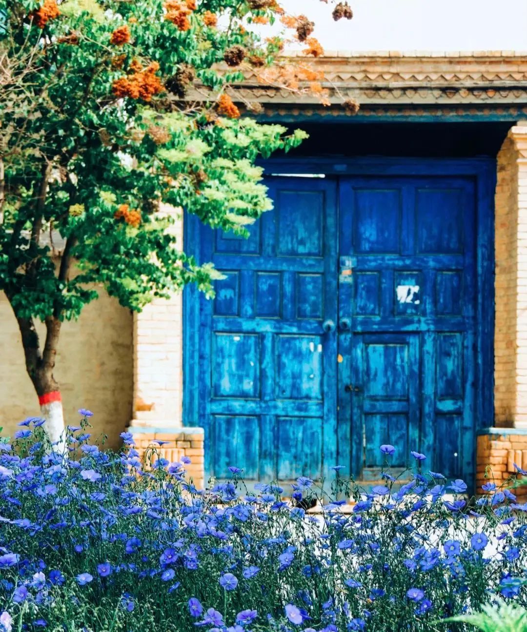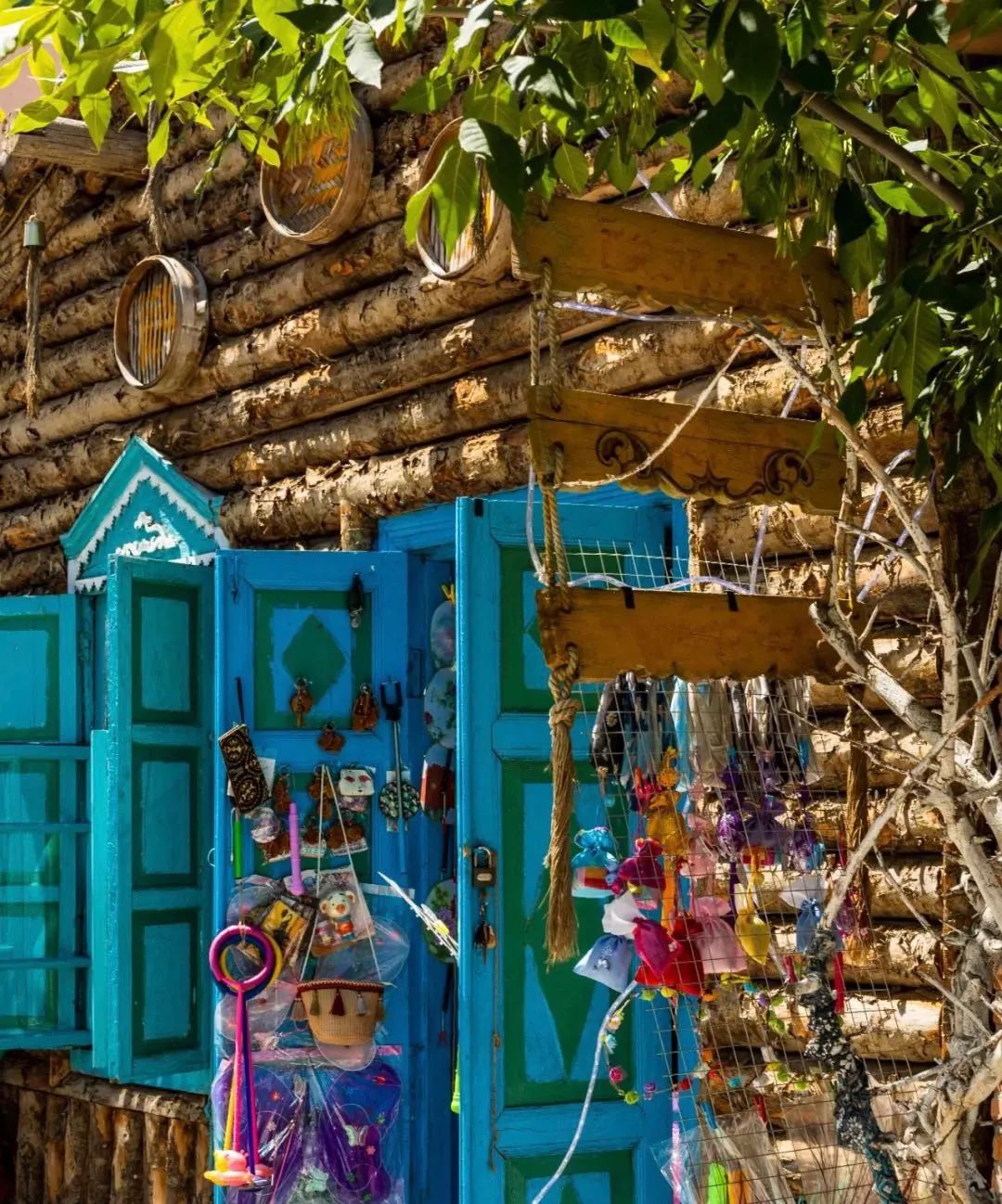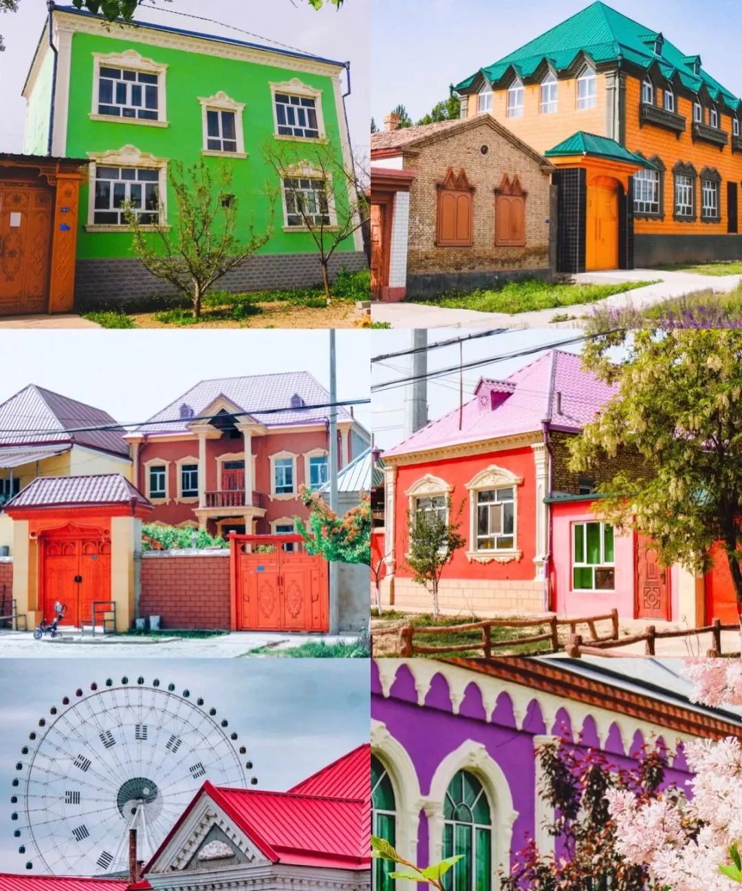 初見離街,一座座寬敞的民族特色庭院映入眼簾。彩色的房子、五彩的瓦、斑駁老舊的尖頂門窗、栩栩如生的浮雕,新疆味道撲面而來,新奇又令人着迷。