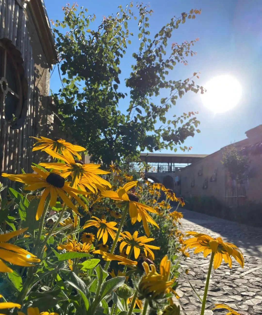 在特克斯城外的山坡上,有一個外觀樸素的農家小院,裏面卻隱藏着驚喜的民居,整個民居都圍繞在花草中。