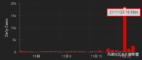 作為非洲疫情最嚴重的國家,目前南非累計確診人數超295萬,累計死亡人數近9萬。儘管11月份上旬南非每日新增病例數始終維持較低水平,但最近一週該數值卻激增。當月22日從312例猛增至次日的近2萬例;25日新增2465例確診病例,也將近前一日的兩倍。儘管目前還沒有證據,但當地科學家懷疑南非這一波新的感染與Omicron有關。