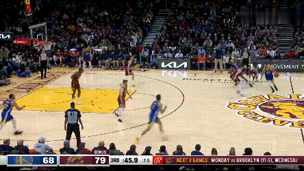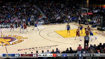 還有更簡單的,庫裏作掩護。由於範弗利特收到的旨意是,直到阿耶莎接管之前,必須聞出庫裏今早使用的洗髮香波品牌,所以他在防庫裏掩護時既不能換防,也不能延誤格林,只能放格林長驅直入,為維金斯創造底角機會。