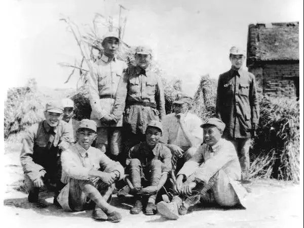 黃農(王雨田 時任山東軍區衞生部部長 一排右1)羅生特( 衞生部顧問 二排右1)白備武(衞生部原部長 二排左1)谷廣善(衞生部政委 後排左1)劉放(衞生部副部長一排左1)(康矛召 攝)
