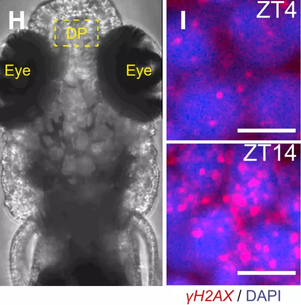 為了探究睡眠與DNA損傷/修復的確切關係,科學家們利用斑馬魚進行了一系列實驗。結果發現,經過一天的活動後,斑馬魚單個神經元中DNA雙鏈斷裂位點的數量會翻倍。