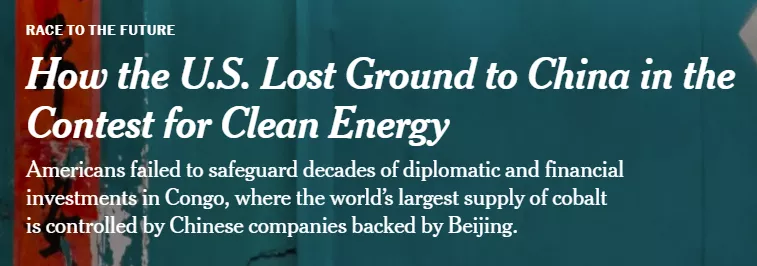 前幾天,NYT 發了一則新聞,標題還挺唬人的,翻譯過來大概是《 美國是怎麼在新能源比賽中輸給中國的? 》