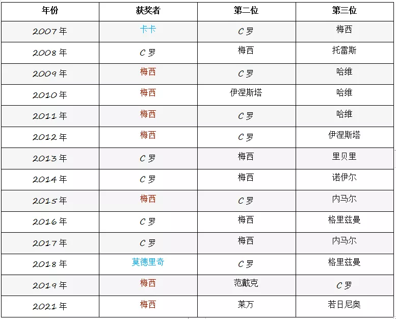 17. 金球獎15年,梅西C羅聯手拿了12次