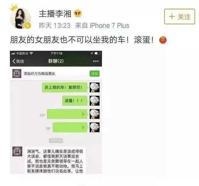 李湘則是線上喊話表示“朋友的女朋友也不可以坐我的車!”