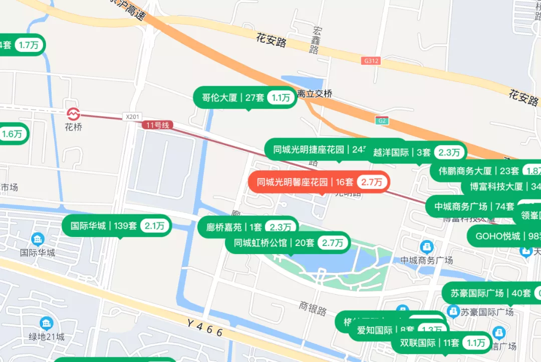 只從居住環境上看,花橋確實沒有上海市中心的環境配套好
