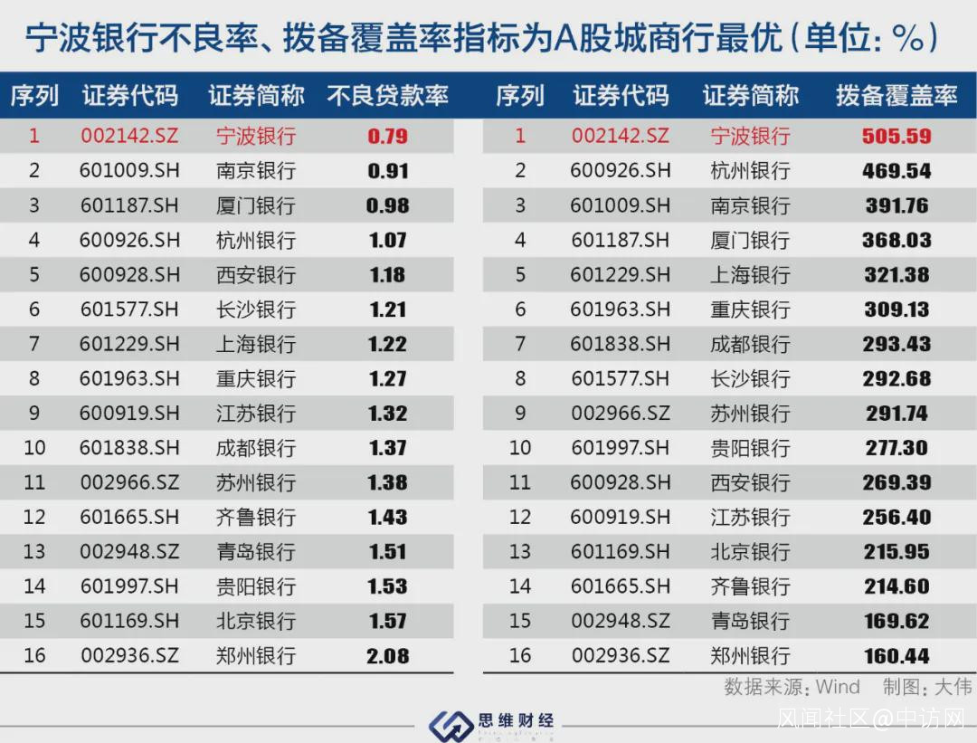 數據顯示,2008年以來,寧波銀行不良率從未超過1%,截至今年三季度末,該行不良率為0.79%,撥備覆蓋率為505.09%,兩項指標在A股城商行中為最優。