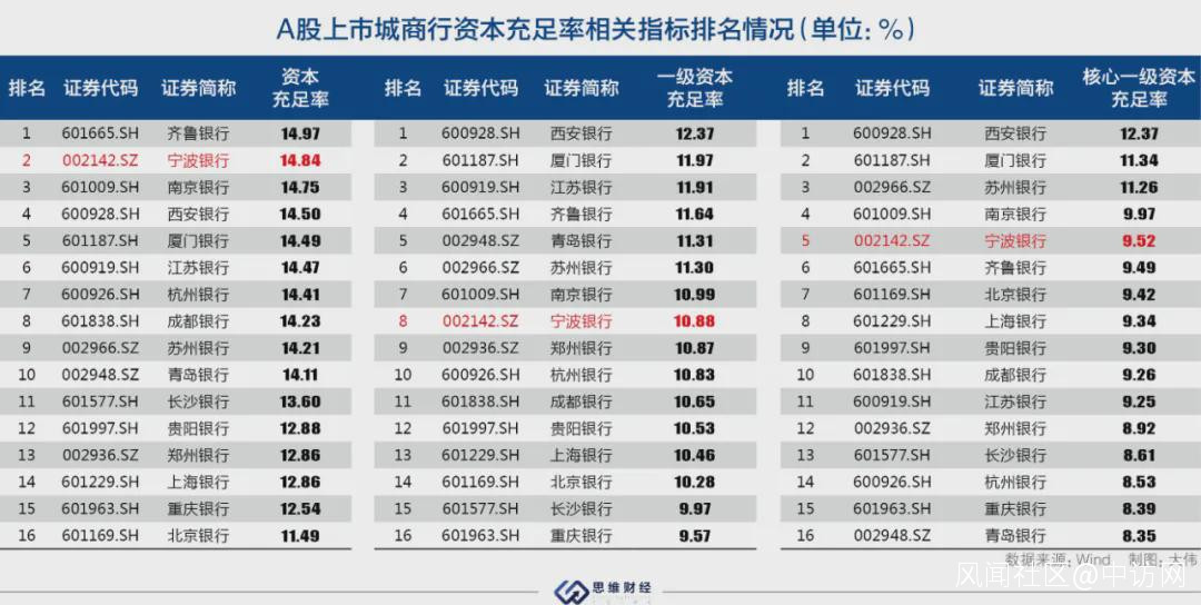 據統計,在A股上市的16家城商行中,寧波銀行的資本充足率相關指標排名靠前,其核心一級資本充足率排名第二,僅次於年內上市的齊魯銀行。