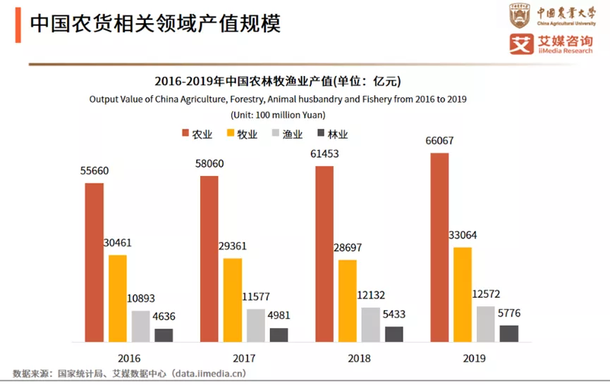 國家統計局數據顯示,中國農業生產產值早在2019年就突破了6萬億元關口。