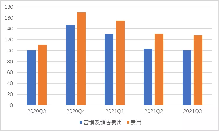 三季度,拼多多的營銷及銷售費用創下了近五個季度的最低值,為100.5億元,同比下降了0.19%。