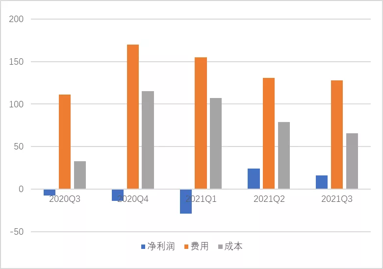由於佔成本支出大頭的營銷及銷售費用減少,拼多多本季度總成本的規模為年度最低,為65.6億元,連續三個季度下滑,環比減少了13.3億元。