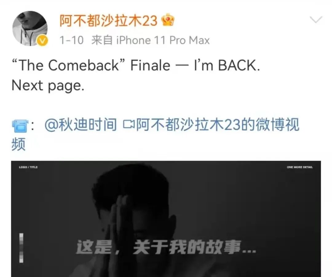 2021年10月25日,阿不都沙拉木在自己的社交平台上發了這樣一句話:“太可惜了,他不可能回到以前的狀態了,久等了。”
