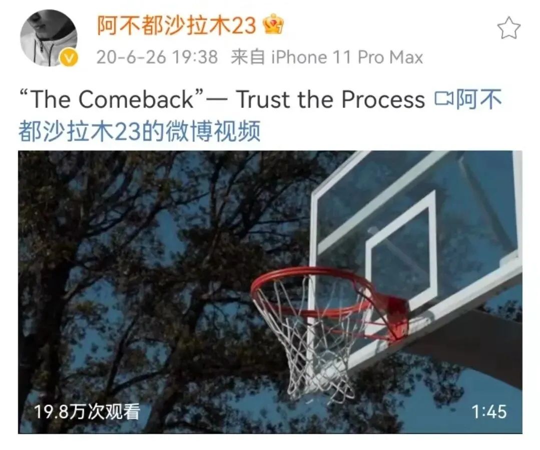“真的從心底感謝這段時間所有關心我和祝福我的朋友們。像你們之中很多人一樣,我只是一個從小有着籃球夢的新疆孩子。”
