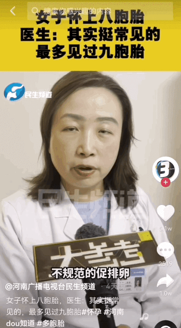 醫生表示,很多在基層的小診所或是民營醫院不規範導致的促排卵,結果導致多胎妊娠的發生其實很常見,甚至還有九胞胎情況的發生……