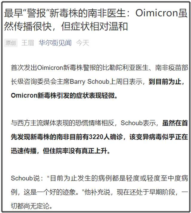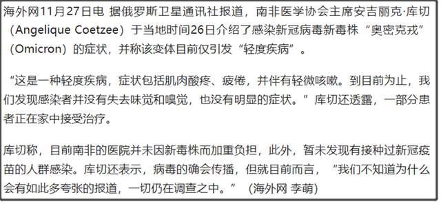 而在各國斷航之後,南非透露出來的信息,馬上180度扭轉稱,奧密克戎變成“温和無害”。