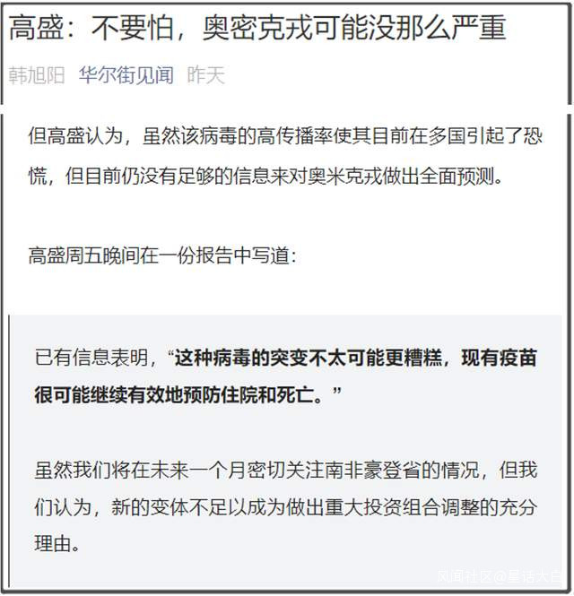 我估計,高盛的已有信息應該是這兩天南非方面不斷有人來給奧密克戎的危險係數潑冷水,降降温。