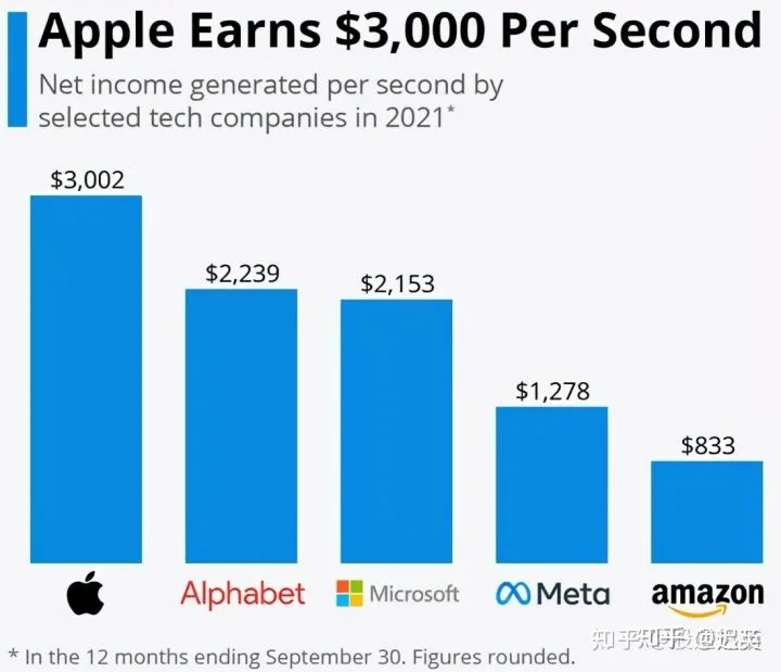 反觀疫情肆虐,每天死亡人數好幾千的美國,過去一年全球利潤最高的5個公司,竟然全是他們家的。。。
