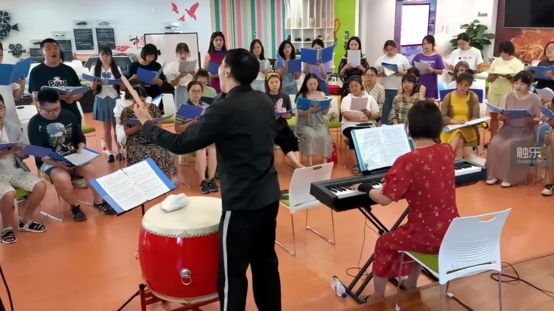其實不用他做太多介紹,我已經在他的個人視頻主頁上看到了不少東西——不是簡歷般的文字説明,而是一段段彩排視頻。播放量最高的一個視頻裏,他們翻唱了流行歌曲《地球之鹽》。鏡頭隨着歌聲搖擺,窗外的光線温柔明媚,把合唱教室照得透亮。演唱者圍成一個大大的半圓,全情投入,臉上藏不下一點陰霾。