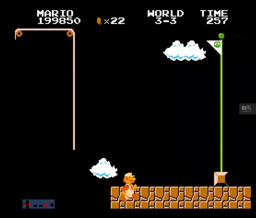 下一幀馬力歐就穿入了牆體。需要補充一點,不只普通關卡的旗幟,Boss關底的斧子同樣遵守“21幀規則”