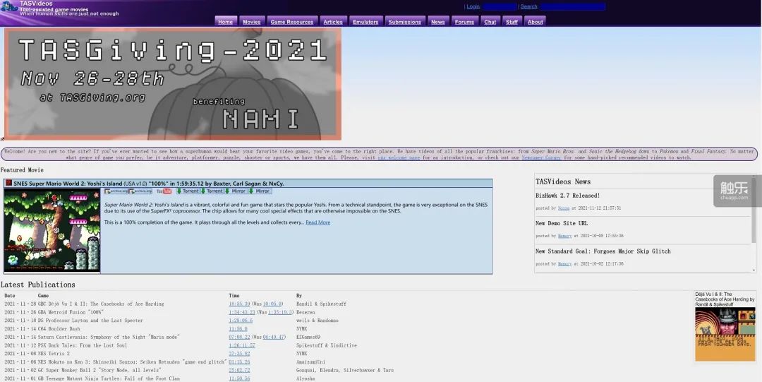 TASVideos建站於2003年,你能從網頁的排版看出來,它已經相當有年頭了