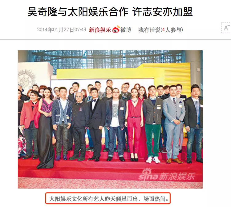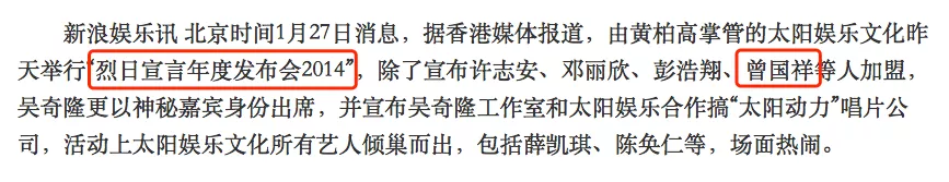 早在2014年,太陽娛樂旗下藝人羣星合影時,就有曾國祥的身影。
