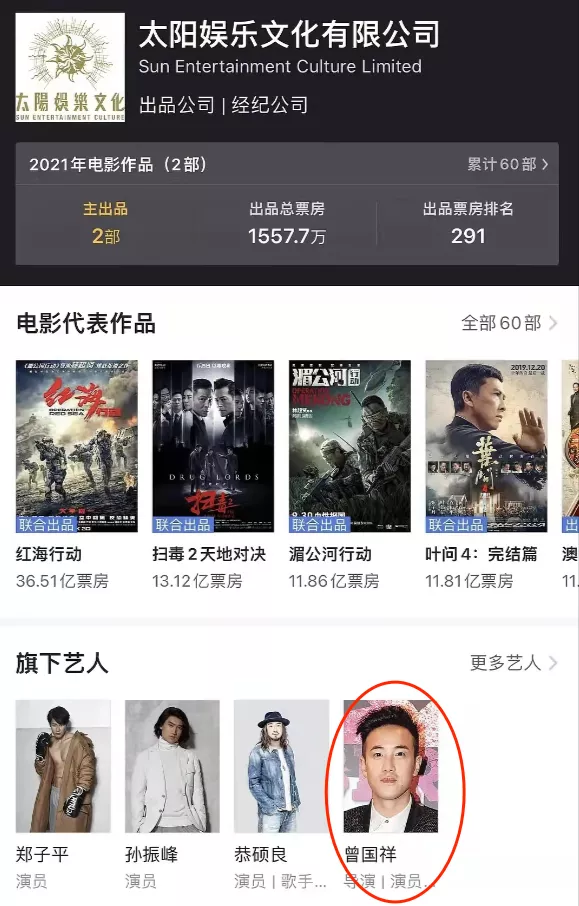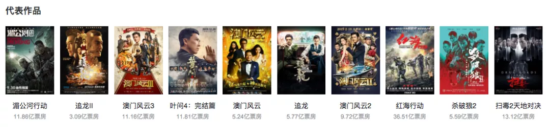用積累的原始資本,投資了60多部電影,其中包括《掃毒》《澳門風雲系列》《湄公河行動》等等。
