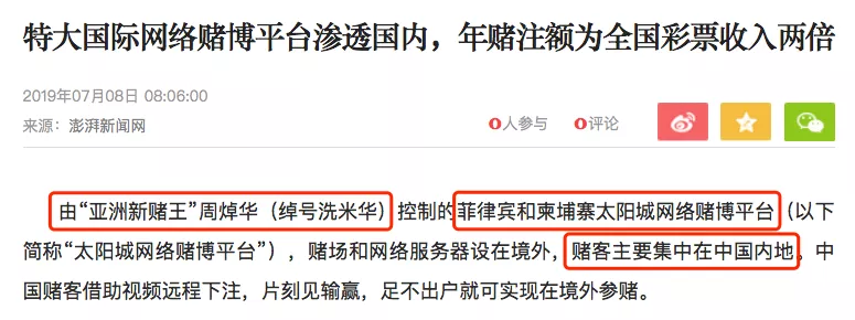 2019年,有個深度報道中提及,太陽城網絡賭博,在大陸每年賭注就在萬億元以上。