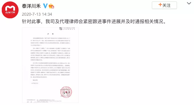 2020年7月,就在洗米華被調查之時,泰洋川禾馬上發聲明撇清關係。