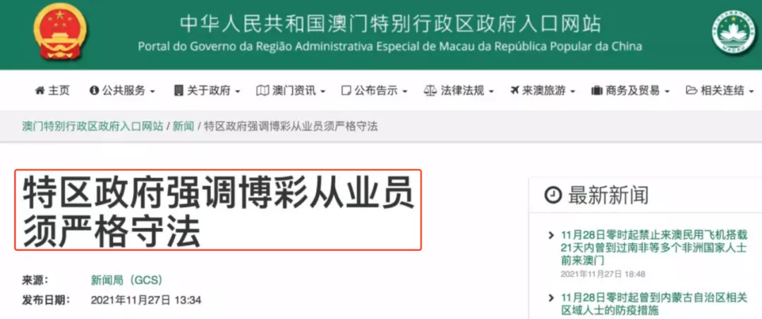 當天澳門還出了公示,再次強調,所有博彩從業人員,必須嚴格遵守法律。