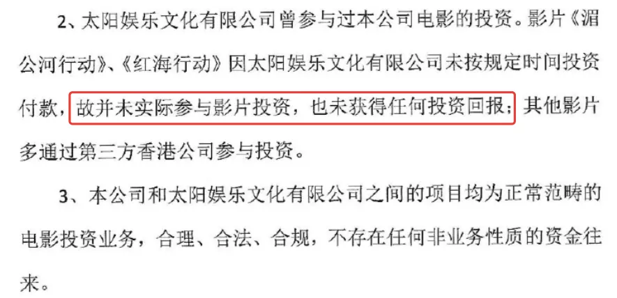 聲明的意思是,太陽娛樂投資了,但又沒投。