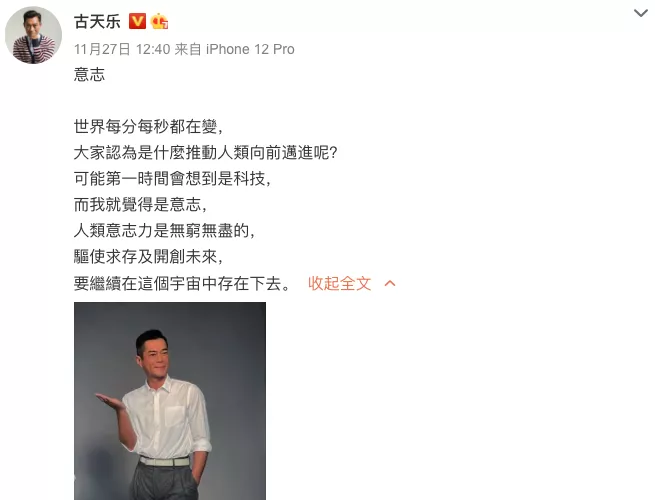 到現在,古天樂一直保持着每天賦詩一首的習慣。