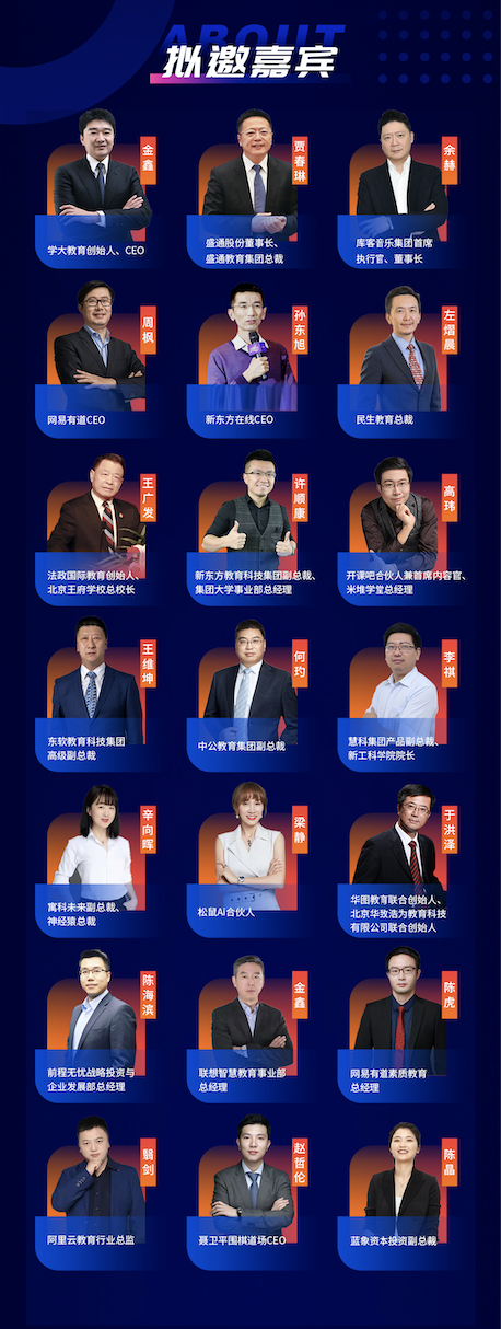 在本次大會上,藍鯨教育邀請了數十位資深經濟學者、上市公司董事長、資本機構管理者、明星教育機構掌舵人,共同分享和探討他們所看到的教育行業的變革以及未來的方向,希望對處於迷茫和抉擇期的教育從業者有所啓迪。