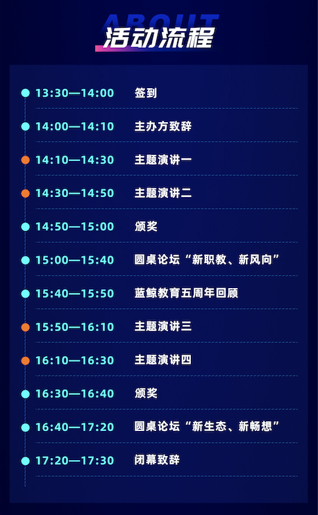 對於這一年的教育行業,我們會想到什麼?是資本市場依然有“新人”進入,還是融資消息依然不斷傳出;還是靴子落地,機構的矇眼狂奔寫下休止符?藍鯨教育將通過主題演講及圓桌論壇,幫助教育行業從業者們快速洞悉、謀定遠方,從思維、戰略、佈局錨定未來的發展和走勢,應對新形勢、新局面、新方向。