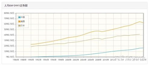 但按照購買力平價計算,1995年美國的GDP是2.9萬美元左右,而日本是2.3萬美元,日本只有美國的70%左右。