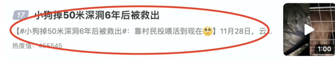 諷刺的是,今天同樣上熱搜的,除了劇組報案堅持聲稱自己沒有殺貓的前面,還有一條關於動物的新聞。前後對比明顯。