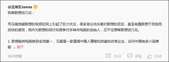 司馬南質疑聯想的視頻在網上引起了巨大關注,很多言論充斥着對聯想的否定,甚至有置聯想於死地而後快的感覺,我作為聯想的同行和競爭對手神舟電腦的創始人,忍不住想幫聯想説幾句。